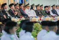 Gubernur Lampung Rahmat Mirzani Djausal, Wakil Gubernur Lampung Jihan Nurlela, serta anggota Forum Komunikasi Pimpinan Daerah (Forkopimda) mengikuti jalannya Upacara Detik-Detik Proklamasi HUT RI…