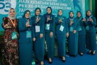 Ketua TP PKK Provinsi Lampung, Purnama Wulan Sari Mirza didampingi sejumlah pengurus TP PKK Provinsi Lampung, menghadiri Puncak Peringatan Hari Kesatuan Gerak (HKG) PKK…