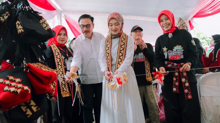 Wakil Gubernur Lampung Jihan Nurlela menghadiri peluncuran Bazar UMKM Tahun 2025 yang digelar Persatuan Wartawan Duta Pena Indonesia (PWDPI) Merah Putih di Halaman Gedung Graha Bintang, Universitas Malahayati, Bandarlampung, Minggu (21/9/2025).