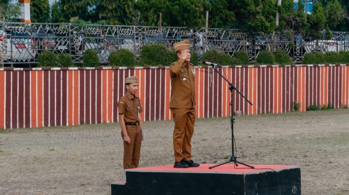 Gubernur Lampung diwakili Staf Ahli Bidang Pemerintah, Hukum dan Politik Achmad Saefulloh menjadi pembina apel mingguan di Lingkungan Sekretariat Daerah Provinsi Lampung, di Lapangan Korpri, Senin (3/11/2025).
