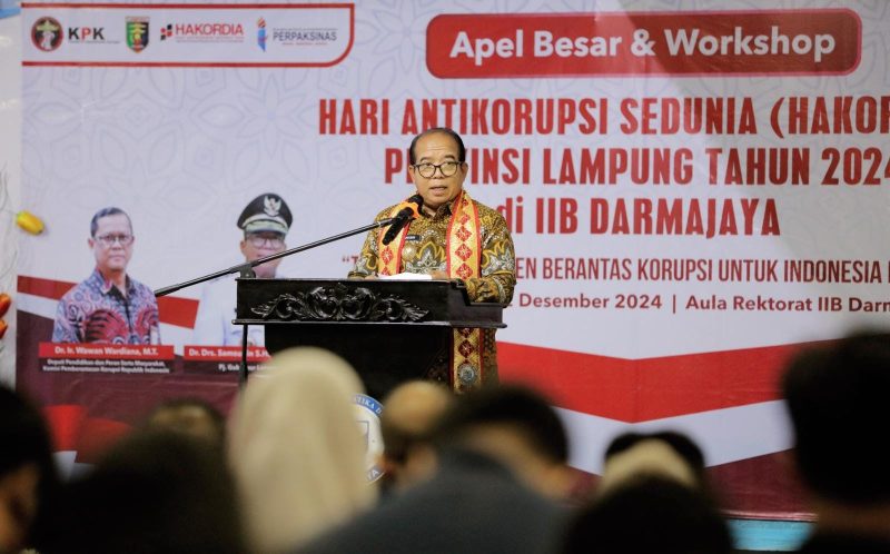 Hal itu disampaikan Samsudin saat membuka Workshop Hari Antikorupsi Sedunia (Hakordia) Tingkat Provinsi Lampung Tahun 2024 di Aula Rektorat Institut Informatika dan Bisnis (IIB) Darmajaya, Bandarlampung, Kamis (12/12/2024).