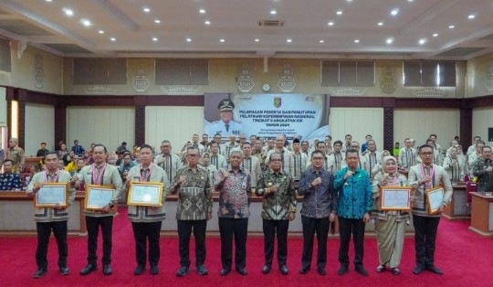 Pada kesempatan tersebut, Pj Gubernur Samsudin dan Deputi Bidang Penyelenggaraan Pengembangan Kompetensi Lembaga Administrasi Negara Republik Indonesia, Dr. Basseng, M.Ed melakukan penyerahan piagam penghargaan dan medali kepada 5 orang peserta terbaik dalam PKN Tingkat II Tahun 2024, yakni terbaik pertama Kepala Dinas Pariwisata dan Ekonomi Kreatif Provinsi Lampung Bobby Irawan, terbaik kedua Kepala Dinas Perpustakaan dan Kearsipan Provinsi Lampung Riski Sofyan, terbaik ketiga Kepala Dinas Kependudukan dan Pencatatan Sipil Kabupaten Tanggamus Maradona, terbaik keempat Kepala Dinas Kependudukan dan Pencatatan Sipil Kota Metro Ika Pusparini Anindita Jayasinga, dan terbaik kelima Kepala Badan Perencanaan Pembangunan Daerah (Bappeda) Lampung Tengah Imam Fatkurozi. (*)
