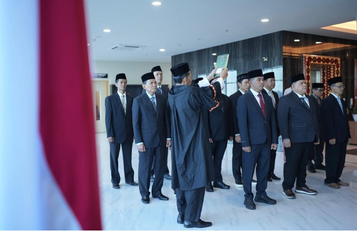 Pelantikan tersebut disaksikan Kepala Biro AUPKK Dr. Juanda Naim dan Kepala Biro AAKK Dr. Abdul Rahman.