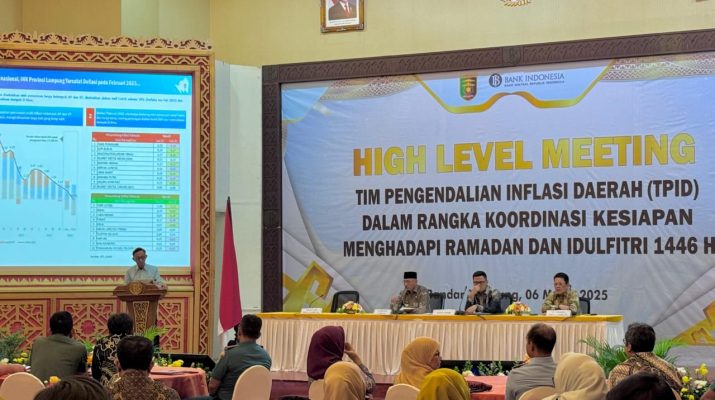 “Kita semua perlu bergandeng tangan dalam melakukan langkah-langkah pengendalian inflasi agar tidak terjadi masalah di tengah meningkatnya kebutuhan masyarakat,” ujar Gubernur Lampung, Rahmat Mirzani Djausal, S.T., M.M., dalam High Level Meeting (HLM) yang dihadiri oleh Bupati/Wali Kota, FORKOPIMDA, OPD, serta asosiasi pelaku usaha di Kantor Perwakilan Bank Indonesia Provinsi Lampung, Rabu (6/3/2025).
